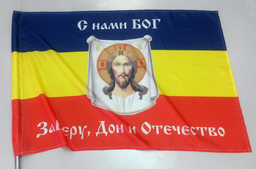 знамя казаков Довольны Вашей работой. Прикрепляю фотографию со дня освещения знамени в Кугультинском храме Николая Угодника.